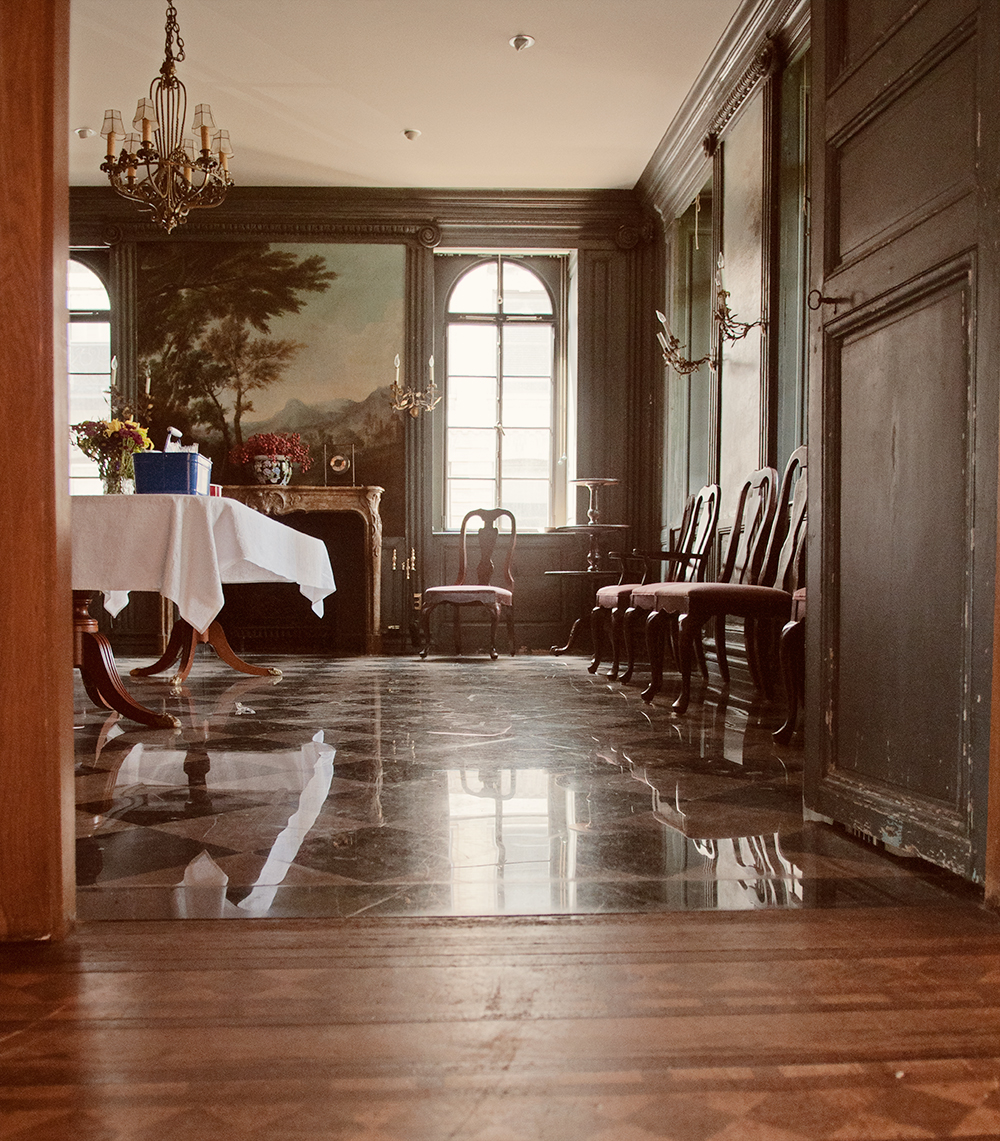 Standing in the foyer, looking into the dining room that was imported from Italy. Photo: Alice Gebura
